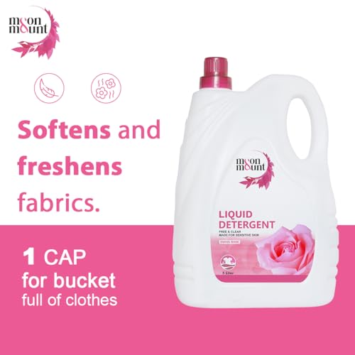 Be the first to review “Moon & Mount liquid detergent 5 litre top load front load, detergent liquid for washing machine – balanced PH, Non-toxic (Swiss Rose)” Cancel reply