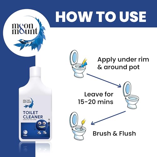 Moon & Mount Toilet Cleaner 1L delivers powerful cleaning for toilet bowls and seats, easily removing tough stains, rings, and limescale buildup. Its advanced formula effectively tackles hard water stains, rust, and lime deposits, keeping your toilet hygienic and sparkling clean.